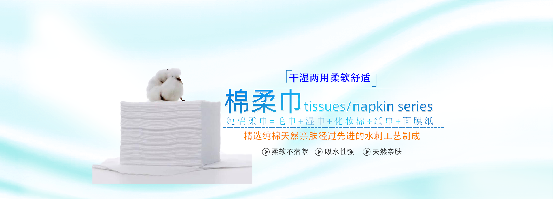 純棉水刺無紡布,為全新的水刺工藝。將優(yōu)質的天然棉纖維經梳理成網后,通過...